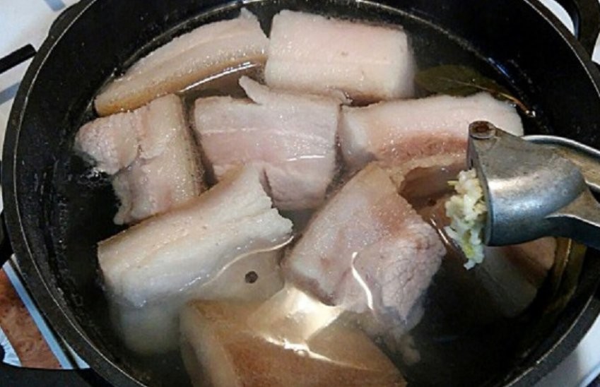 - Use 1 liter of water for each kilogram of belly. Put the water in a pot over the heat, salt and pepper it.