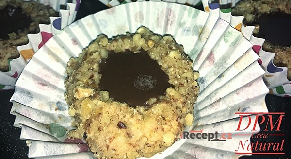 • In a bowl, mix the oat flour, date paste and honey. Let it sit for a while so the flakes absorb moisture. Then from the mixture shape balls, coat them in ground nuts and make a hollow in the center. Into the hollow we will put melted chocolate, which we prepare in a water bath by mixing the butter, chocolate and milk.
