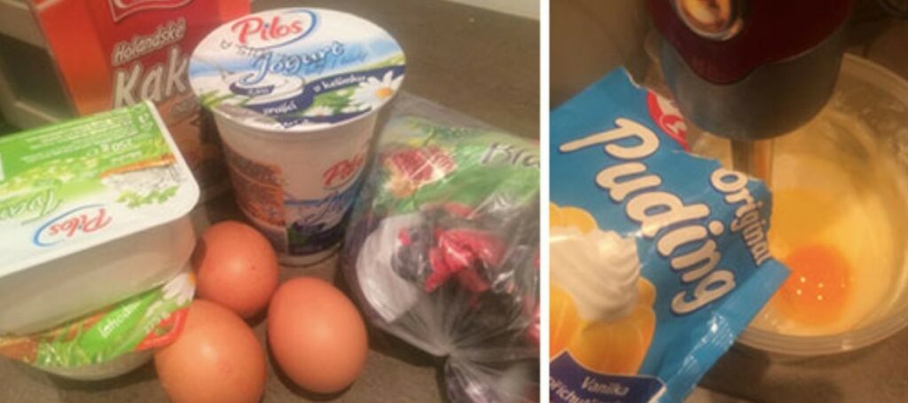 - Prepare the ingredients. Blend the smooth and lumpy quark with a hand blender, add 4 tablespoons of plain yogurt and the vanilla pudding.