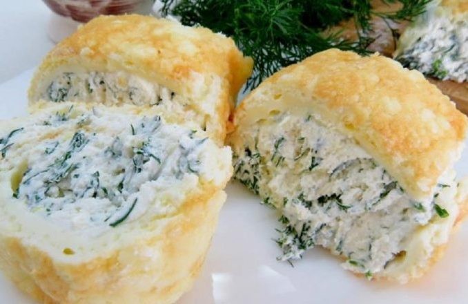 - 4. Preparing the filling: Meanwhile prepare the filling. Mix the cottage cheese with chopped dill, parsley and crushed garlic. Salt, pepper, and spread the mixture evenly on the cooled batter (about two-thirds).