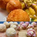 These cheese balls with Debrecínka are a great choice as an appetizer or snack for grilling. Paired with a homemade light potato salad without mayonnaise they offer the perfect combination of creamy cheese, spicy meat and fresh vegetables.