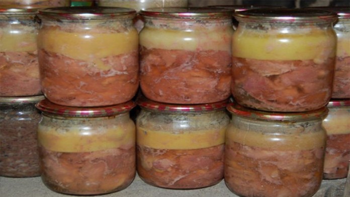 • Filling the jars: Place a bay leaf and a few peppercorns at the bottom of each jar. Alternate layers of meat and bacon so the can is tasty and well layered. Press the meat down so there is no unnecessary air between the pieces.