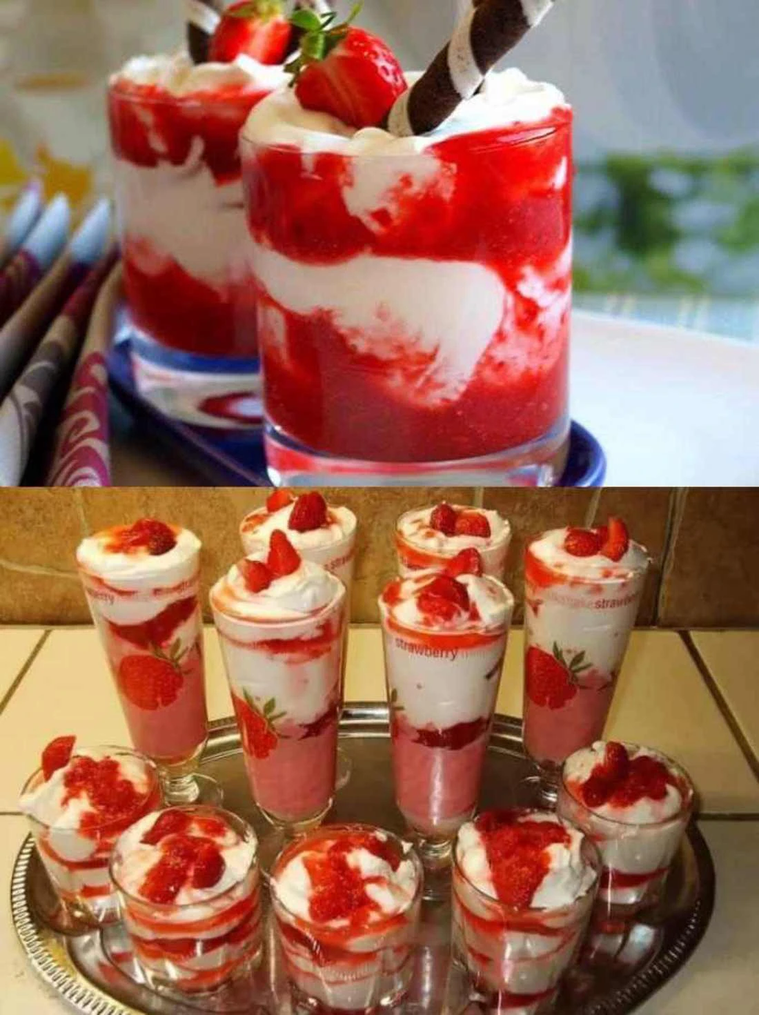 • Layering: In glasses or jars, layer the strawberry purée and pribiňáček cream alternately. You can add fresh slices of strawberries on top.