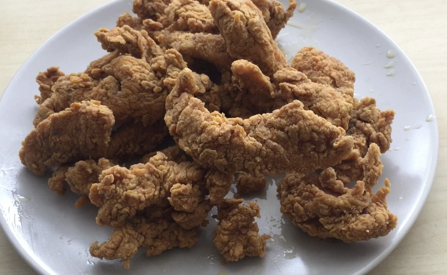 If you want to give the strips a truly „KFC styl“, lightly shake them in a bowl with flour after breading. This will create small clumps and ridges that, after frying, make that typical, airy-crispy crust.