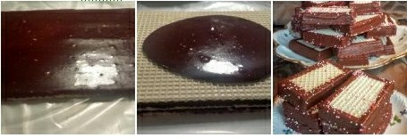 - Preparing the wafer layers: Place baking paper on a smaller baking tray and put the first wafer sheet on it. Spread cream on the first wafer and cover it with the second wafer. Repeat this process until you have used 5 wafer sheets (the top should remain unspread).