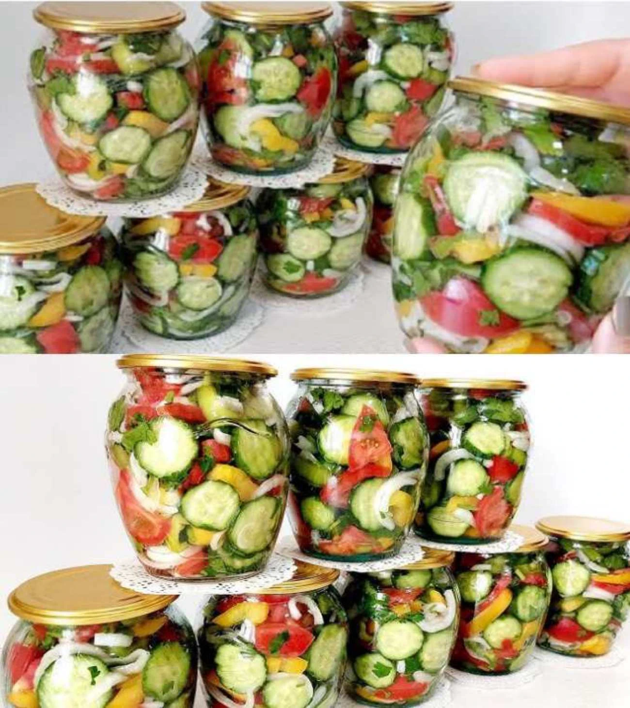 Crunchiness: don’t cut the vegetables too finely and don’t overdo the sterilization time.