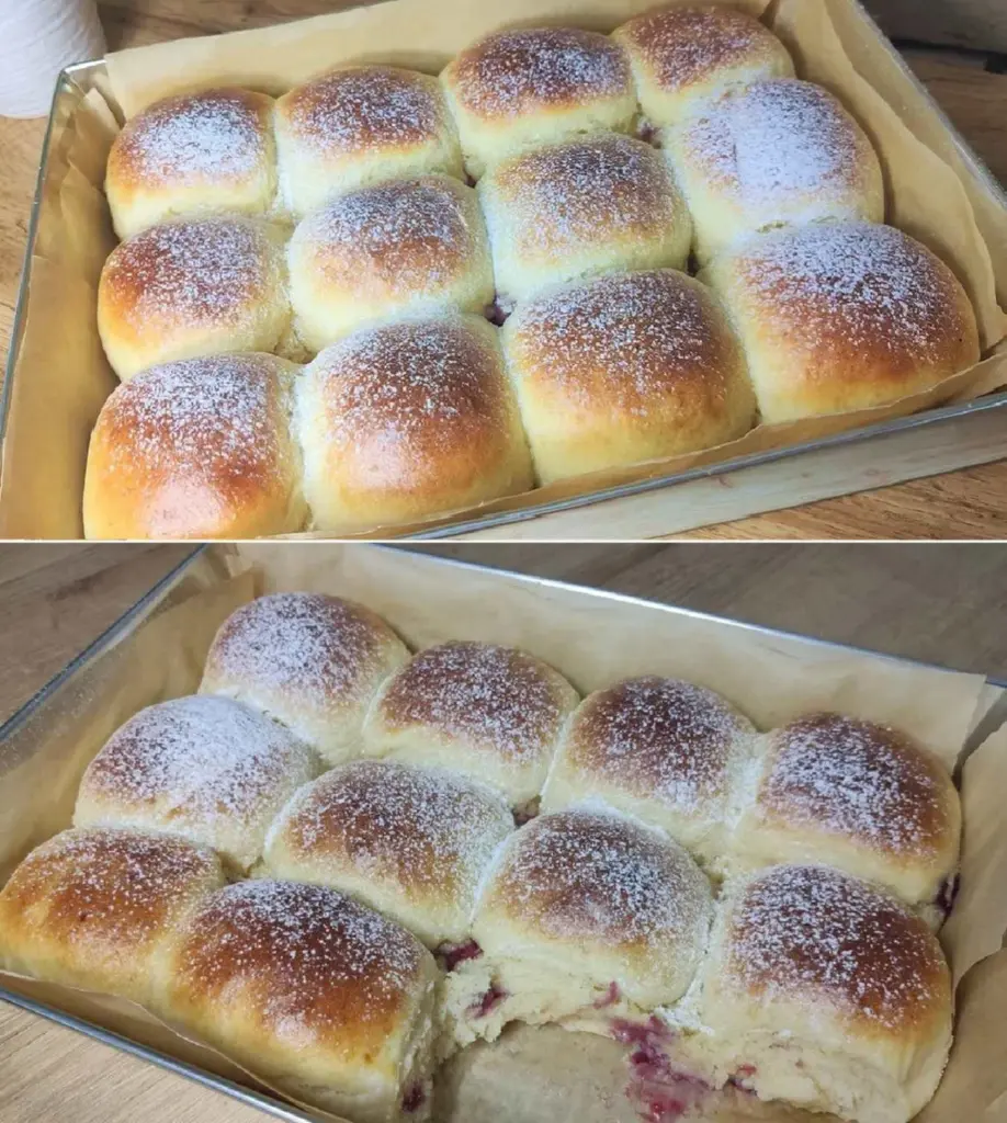 Traditional recipe for homemade yeast buns filled with jam: exact ingredients, starter, step-by-step method, times and number of servings. Fluffy like grandma's.