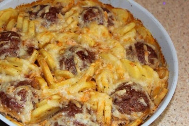 This baked dish is very filling and juicy, an ideal alternative to baked potatoes and meatballs. You can also add seasonal vegetables, such as bell peppers or tomatoes, which will further enrich the dish. This recipe is great for a quick, tasty and nutritious dinner.