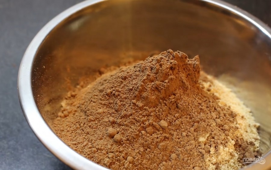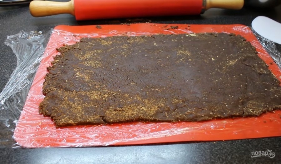 - 1. Preparing the dough: Grind the chocolate cookies into a fine crumb. Add the cocoa and sugar and mix everything thoroughly. Then slowly pour in 100 ml of warm water and form a dough, which you will roll out into a sheet.