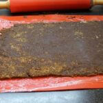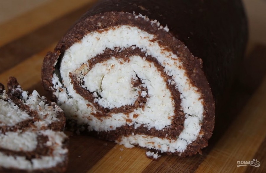 - 3. Assembling the dessert: Evenly spread the coconut filling onto the prepared cookie sheet. Then roll the dough into a roulade and wrap it in cling film.
