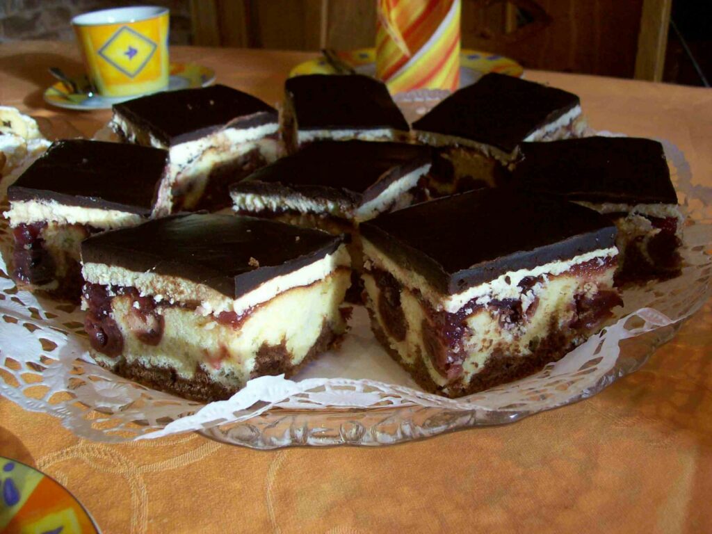 • Preparation of the glaze: Melt the chocolate and mix it with the milk. Spread the glaze evenly over the layer of cream. Let the dessert chill in the refrigerator for at least 2 hours so everything sets well.