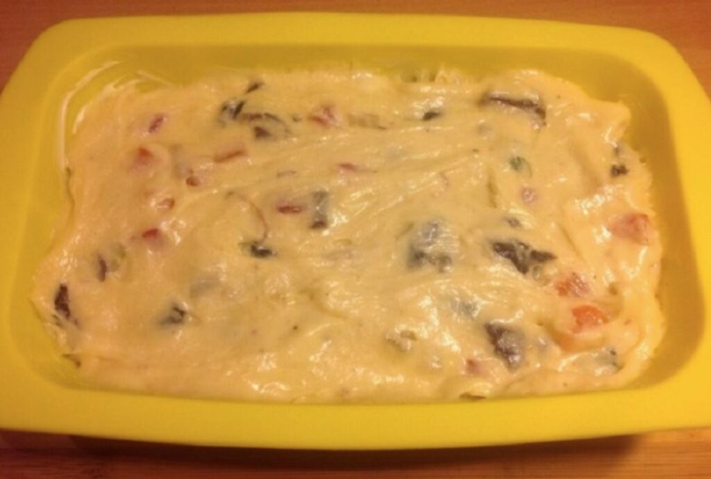 - After the time has passed, whisk the eggs until frothy, add the yolks, and mix with the dough. Don’t forget the softened butter cut into pieces and the sugar.
