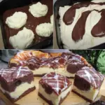 • Cottage cheese filling: Beat the egg whites until stiff. In another bowl, beat the yolks with the sugar and pudding powder, add the softened butter and cottage cheese. Mix everything into a smooth cream and finally gently fold in the egg white foam. Spread the cottage cheese filling evenly over the first layer of cocoa batter and smooth it. Then pour the second half of the cocoa batter on top.
