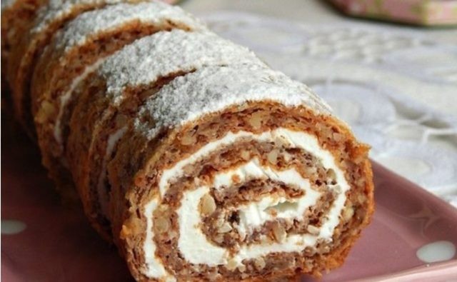 Juicy, quick and simple. An irresistible flourless nut roll with sour cream — you'll fall in love with it at first sight recept