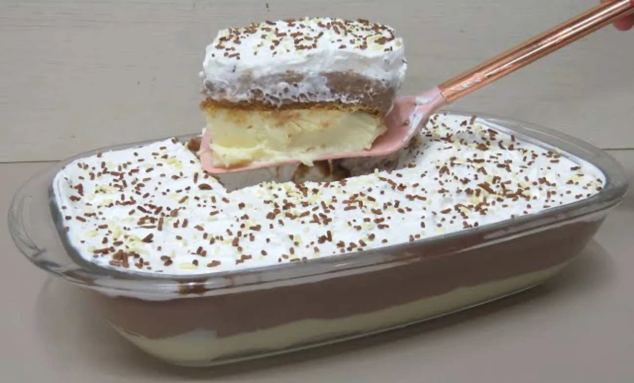 This no-bake creamy dessert is an ideal choice when you want to prepare something delicate, sweet and yet absolutely simple. It holds its shape well, tastes great and always makes an impression – whether you serve it at home, to guests or prepare it for family celebrations. Thanks to the biscuits, the two types of creams and the whipped cream layer, it is perfectly balanced and pleasantly light.