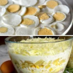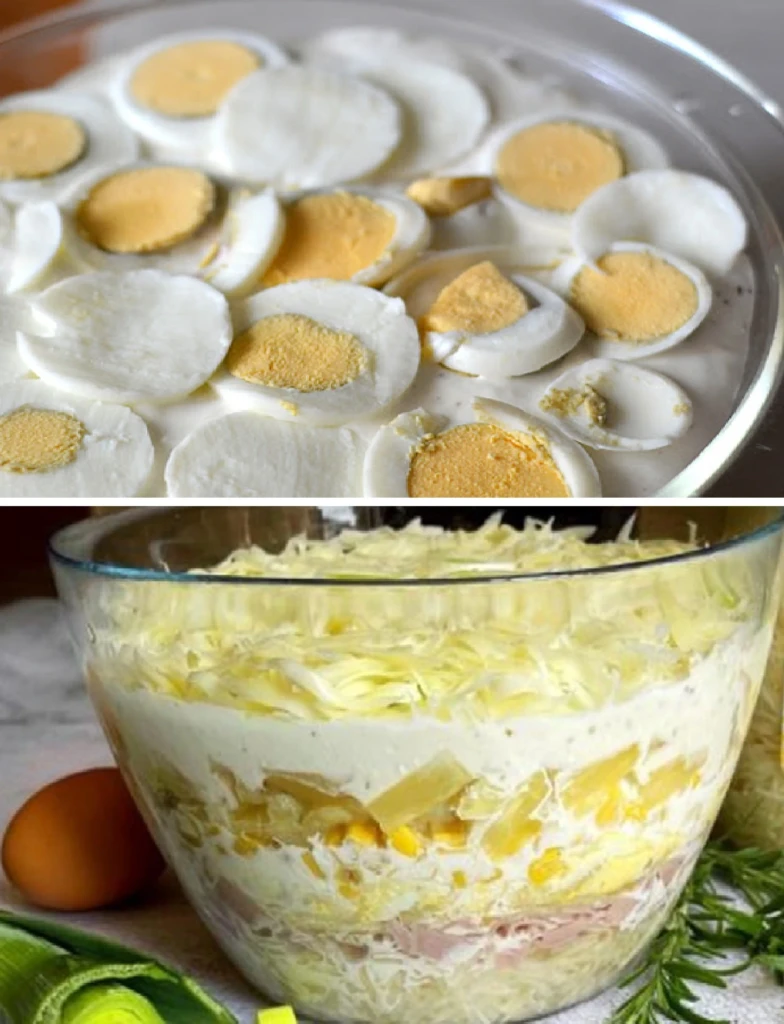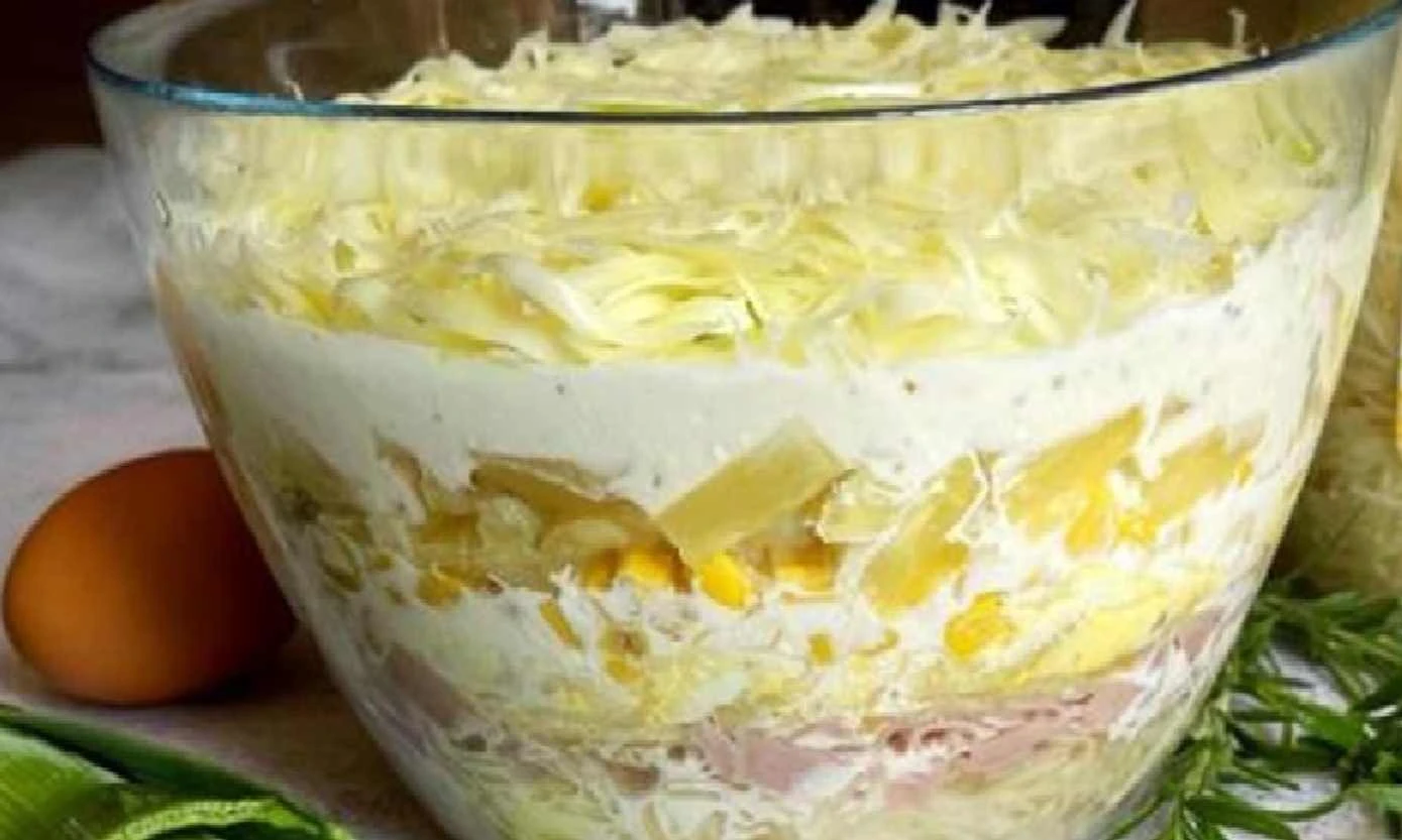 This layered salad is excellent both in flavor and visually. Its colorful layers look beautiful in a glass bowl, and thanks to the combination of juicy pineapple, ham and a delicate dressing it is always the hit of any celebration. Prepare it the day before and simply serve in the morning – you’ll save time and earn praise from all your guests.
