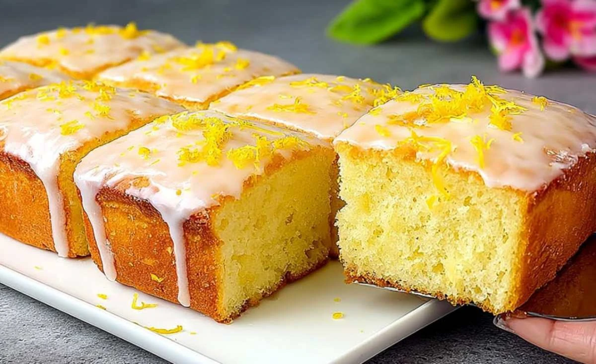 • Finishing Pour the glaze evenly over the cooled cake and sprinkle with a little lemon zest. Let set for 10–15 minutes, then slice.