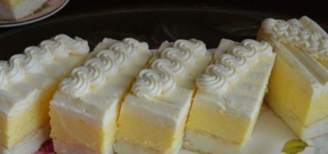 - Assembling the dessert: Spread the egg yolk cream over the cooled batter first and smooth it nicely. Carefully layer the vanilla cream on top of the egg yolk cream. You can decorate the top according to your imagination.
