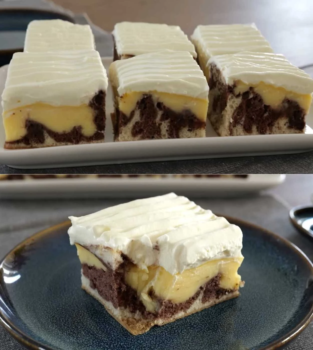 Macocha slices are an ideal choice if you want to bake a dessert that combines visual appeal with an exceptionally delicate flavor. Thanks to the combination of moist batter, pudding cream and the cream layer, they will win the favor of the whole family. Make them for the weekend, a festive table, or just because – and you’ll see how quickly they disappear.