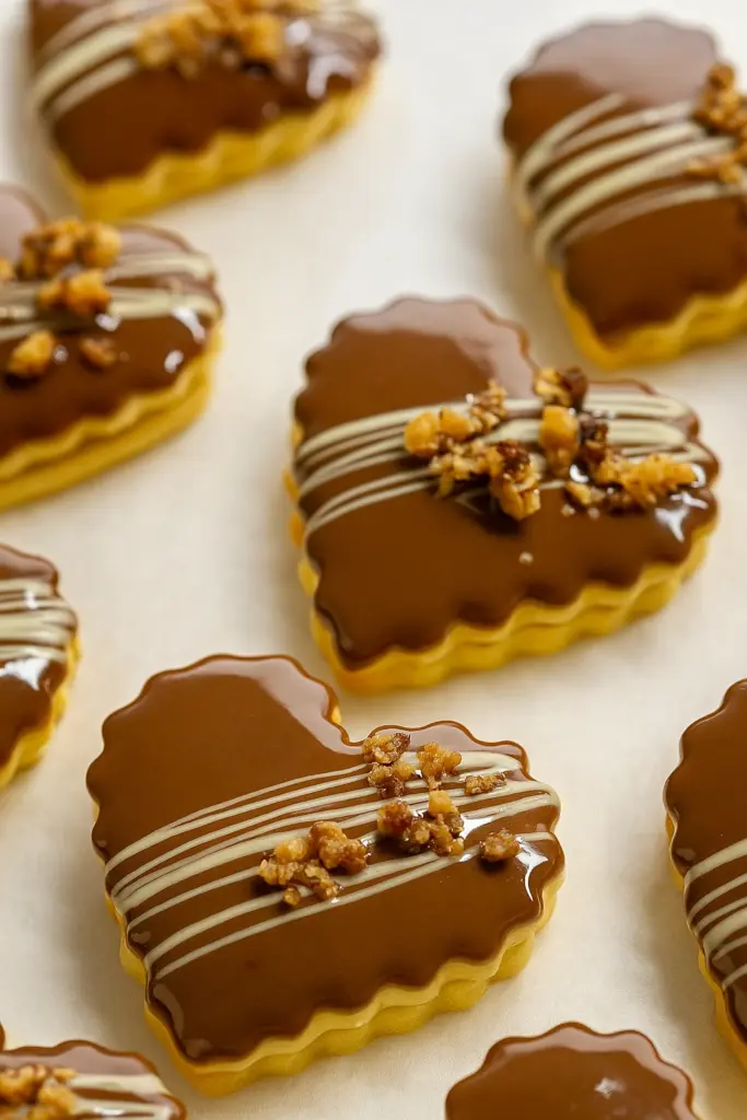 Margot hearts are an excellent choice for anyone looking for cookies with an original taste and strong aroma. Thanks to the buttery base they soften nicely already within a few days after assembling. If you prepare the dough in advance, you can spread the baking over stages and have the work done without stress. The Ledové kaštany glaze gives the cookies a unique flavor and appearance that really stands out on the table. The recipe is tested, stable and reliable – ideal for homemade cookies and festive platters.