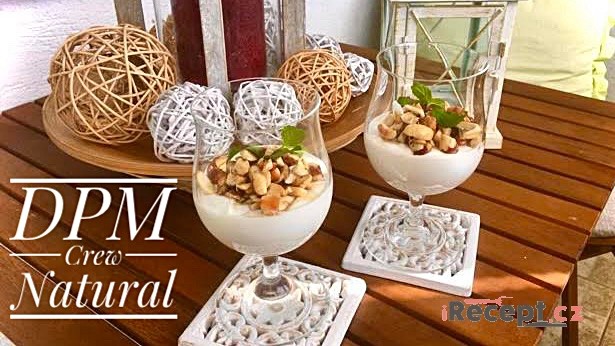 • To start, flavor the quark with 10 drops and mix well. Put the flavored quark into the bottom of the prepared glasses. Set the little glasses aside and let's prepare the nuts :)