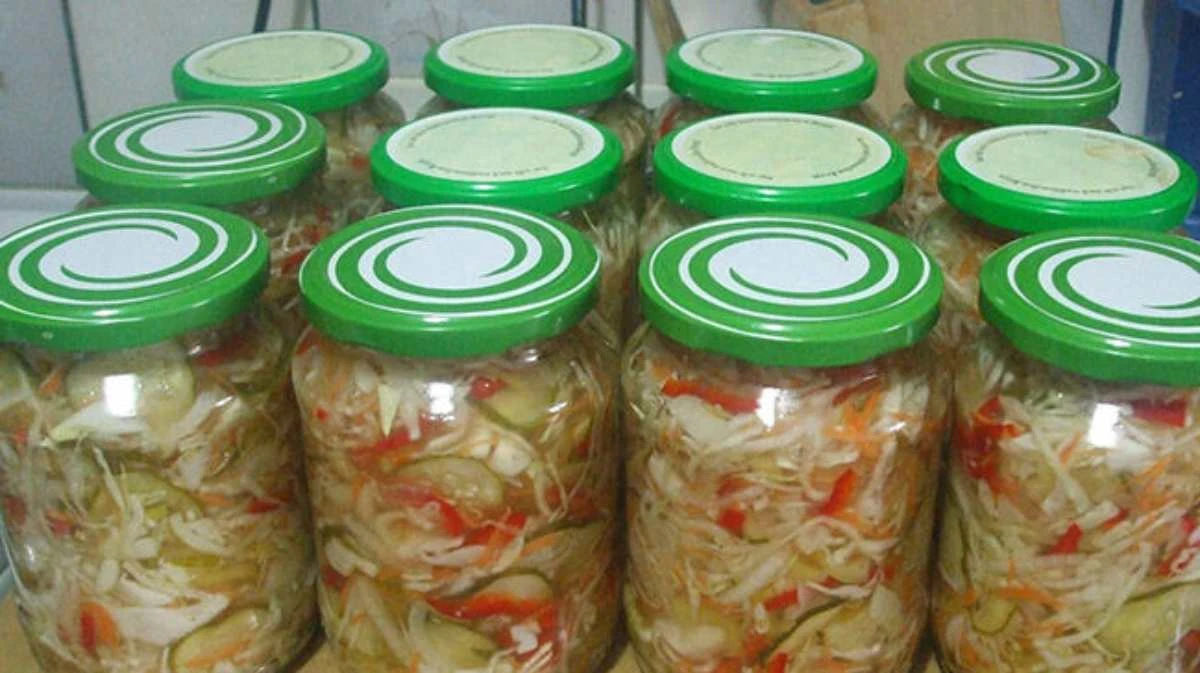 Homemade pickled vegetable relish from cabbage, cucumbers, peppers, onion and carrots. Step by step, exact ratios for the pickling liquid, tips for sterilization and storage. Crispy vegetables all winter long.