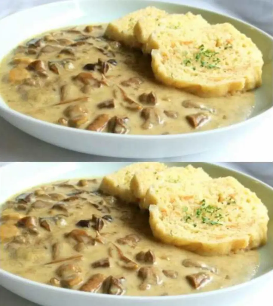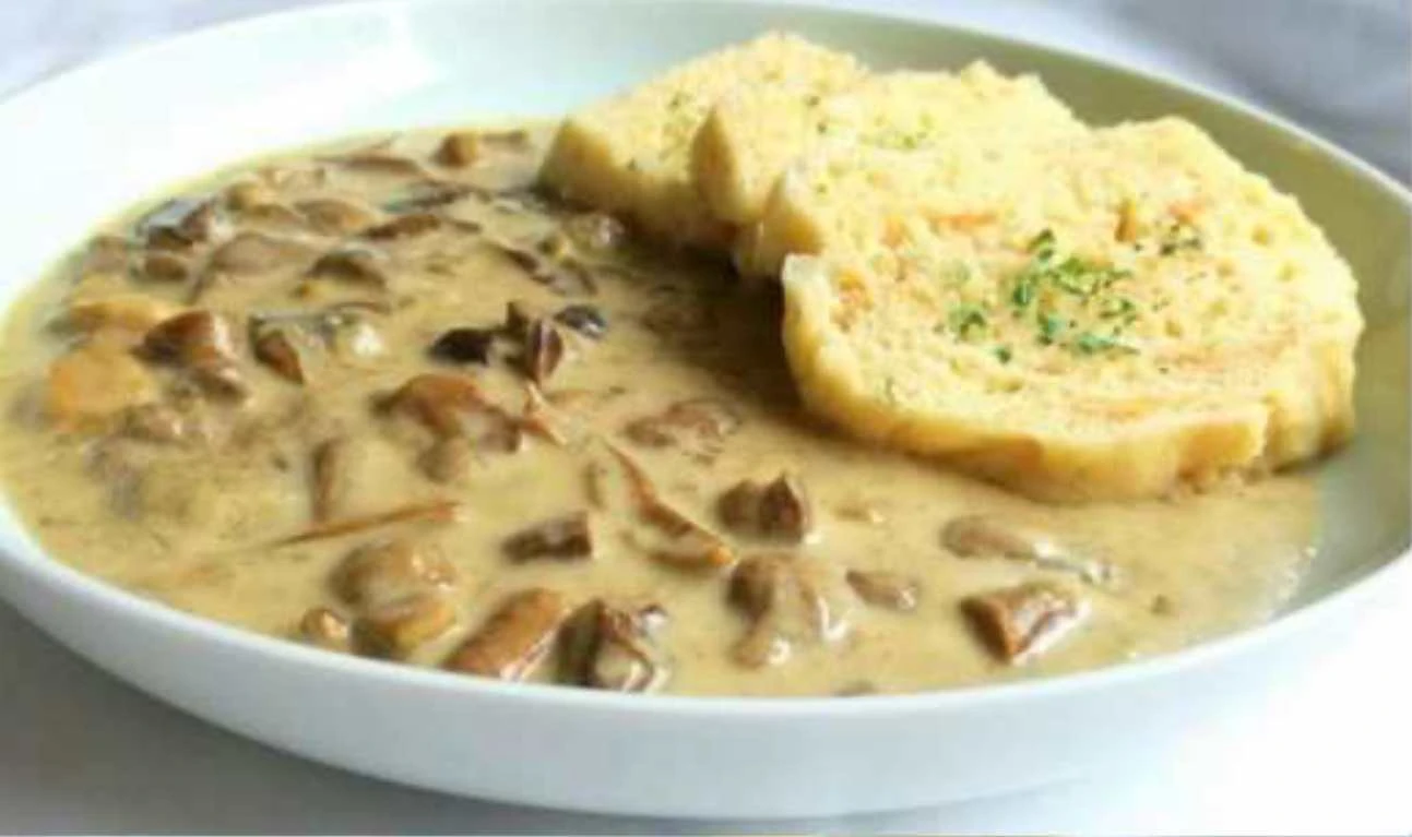 Mushroom cream sauce "na kyselo" – a hearty classic with bread dumplings and mashed potatoes recept