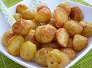 - Preparation of the potatoes: Wash and clean the potatoes. Then place them in lightly salted boiling water and cook them for 5–7 minutes. This step parboils them, which ensures their delicate sweet flavor after baking.