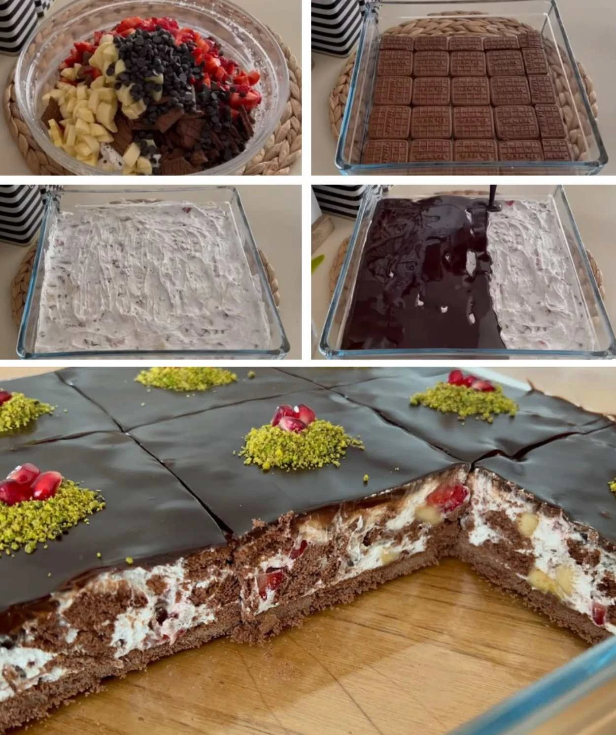 No-bake cake with fruit and chocolate glaze – a perfect combination of flavors recept