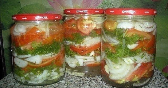 No canning: Pickled tomatoes with onion in a sweet-and-sour brine… recept
