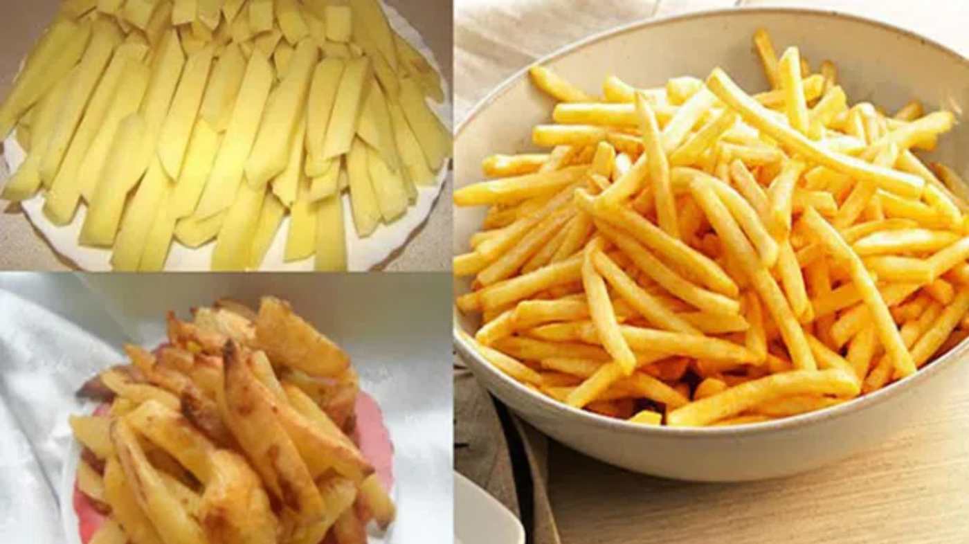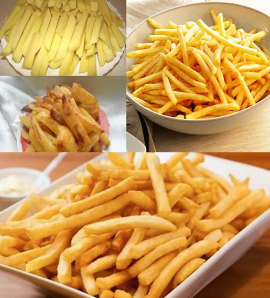 • Peel, wash, and cut the potatoes into thin fries.