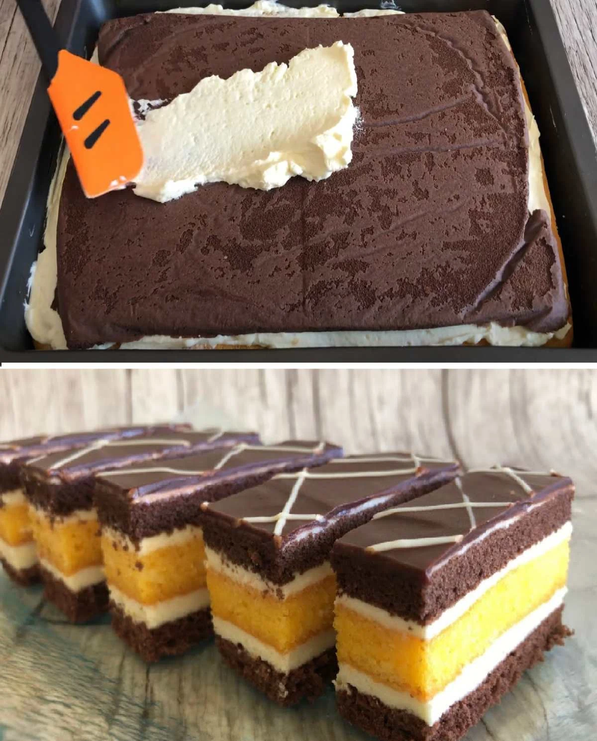 Orange Sanquick slices are among those traditional desserts that are passed down from generation to generation. Delicate cocoa and light sponges layered with fragrant orange syrup and smooth vanilla cream create a harmony of flavors that will delight even the most demanding dessert lovers. This recipe is perfect for Christmas, Easter or any festive occasion.