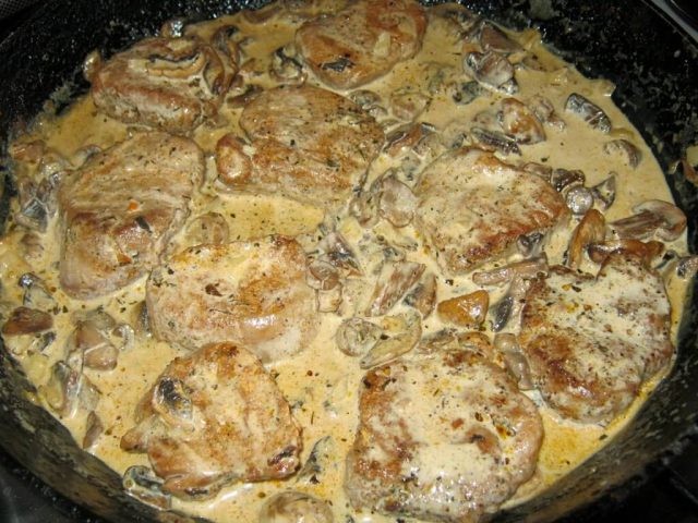 Pork tenderloin in a cheese sauce with mushrooms. This dish will be loved by your whole family! recept