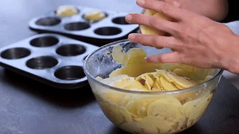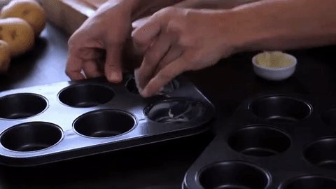 - Form small stacks from the slices and place them into the muffin tin. Finally, pepper them once more.