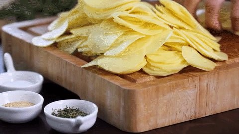 - Peel the potatoes, cut them into thin slices, and transfer them to a bowl.
