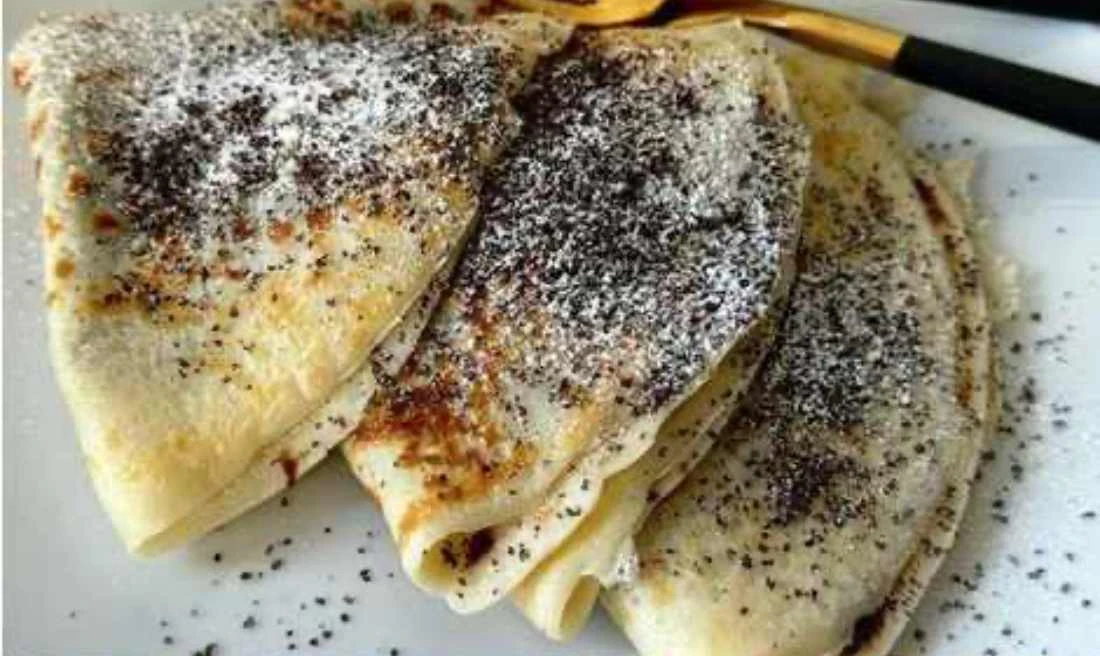 • Finishing Brush the baked lokše with melted butter, spread a layer of plum jam, sprinkle with powdered sugar and ground poppy seeds. Stack them and serve warm.