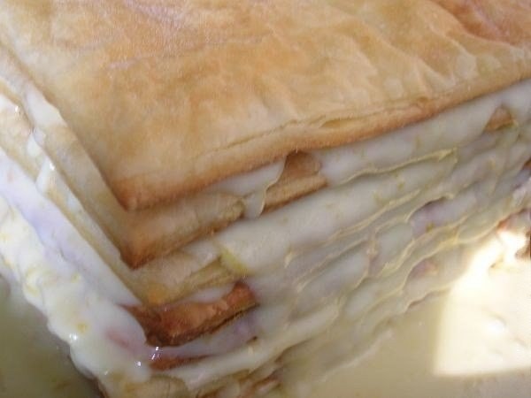 - 3. Assembling the dessert: Spread the prepared cream over the cooled puff pastry. Repeat this process with the remaining layers of pastry to create a layered cake.