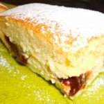 2. In a second bowl we prepare the quark filling in the same way – just mix everything together (quark, sugar, pudding powder, 2 eggs and 3/4 cup milk).