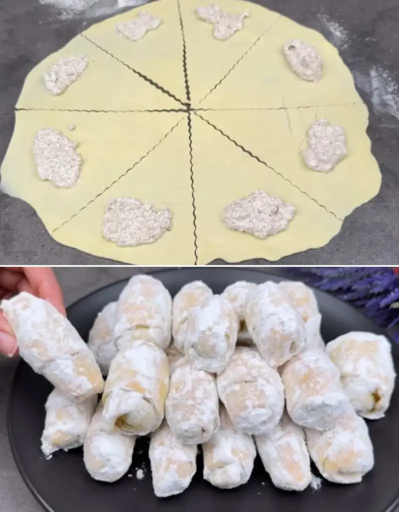 Nut crescents made with sour cream are great when you need an impressive small pastry without yeast. The crumbly dough, light nut filling and simple method guarantee a reliable result. Bake a double batch right away — they disappear from the plate incredibly quickly.