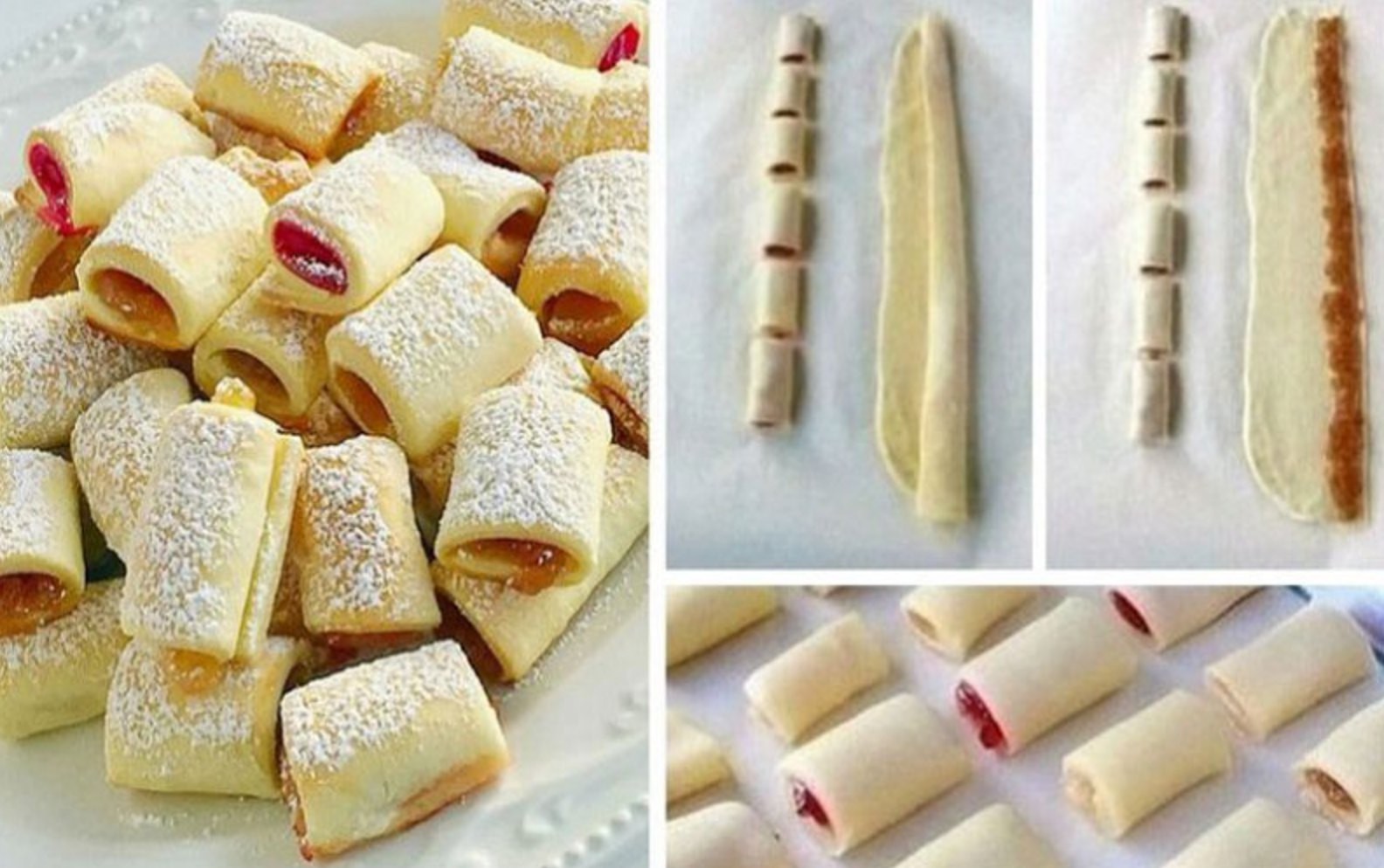 If you have little time, then this recipe is just for you. Excellent quick sour cream rolls filled with jam.