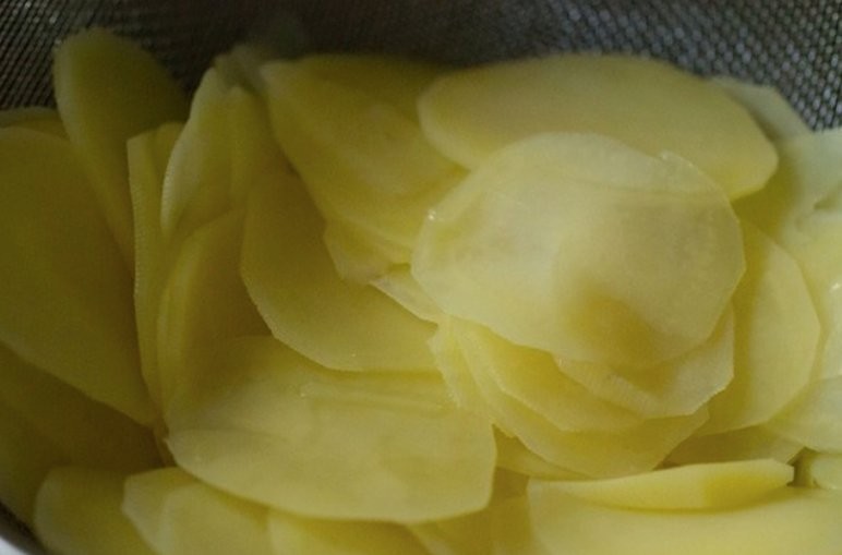 - Remove the potatoes, rinse with cold water and put into a bowl