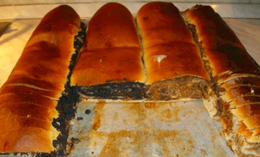 - Shaping the strudels: Take the dough out of the refrigerator, divide it into 4 pieces and roll each piece out on a floured board into thinner sheets. Fill each sheet with your chosen filling (poppy seed or nut), roll up and place on a greased baking sheet close to each other.