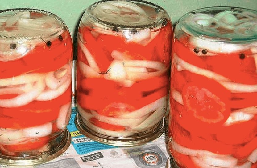 Special delicacy of tomatoes, onions and a delicious brine — recipe recept
