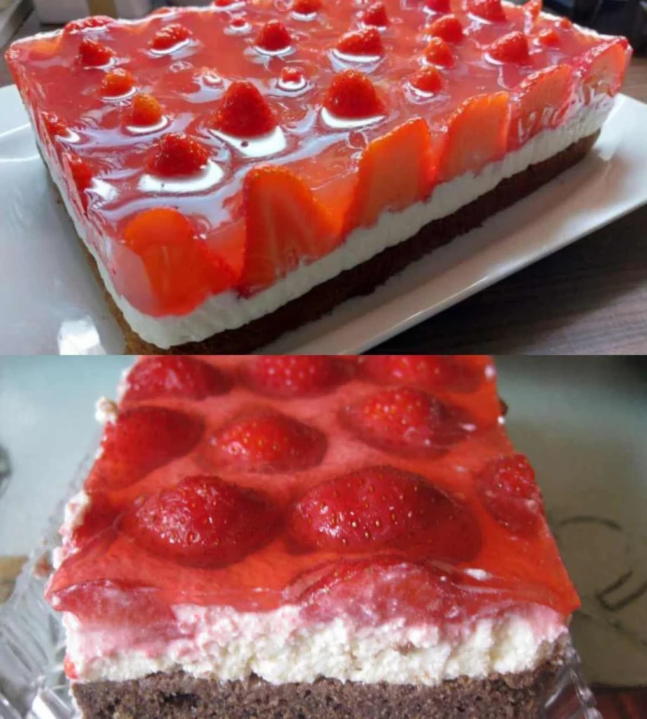 • Preparing and applying the jelly: Wash and dry the strawberries and arrange them on the cream. Prepare the cake jelly according to the instructions in juice or water and let it cool slightly. Then carefully pour the jelly over the strawberries.