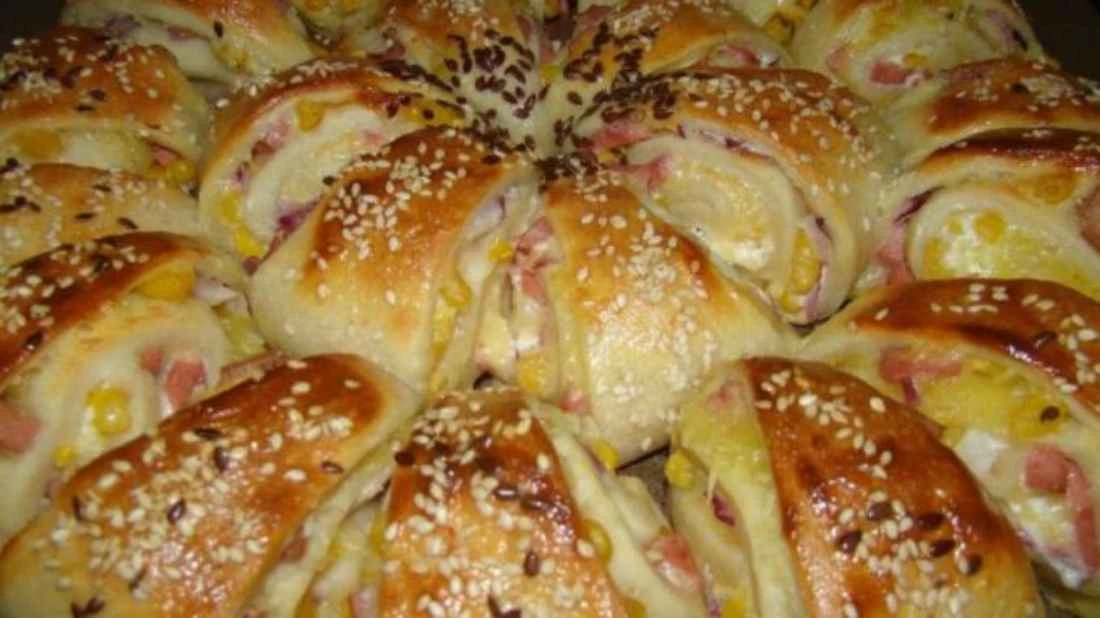 These filled triangles are a great idea for a quick dinner or as a treat for guests. The soft yeast dough, juicy filling and crunchy sesame create a perfect combination you’ll want to bake again and again.
