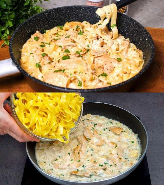 Craving creamy pasta like from a luxury restaurant? This recipe for fettuccine with chicken in a cream sauce is simple, but the result will delight you with its rich flavor and the silky texture of the sauce.
