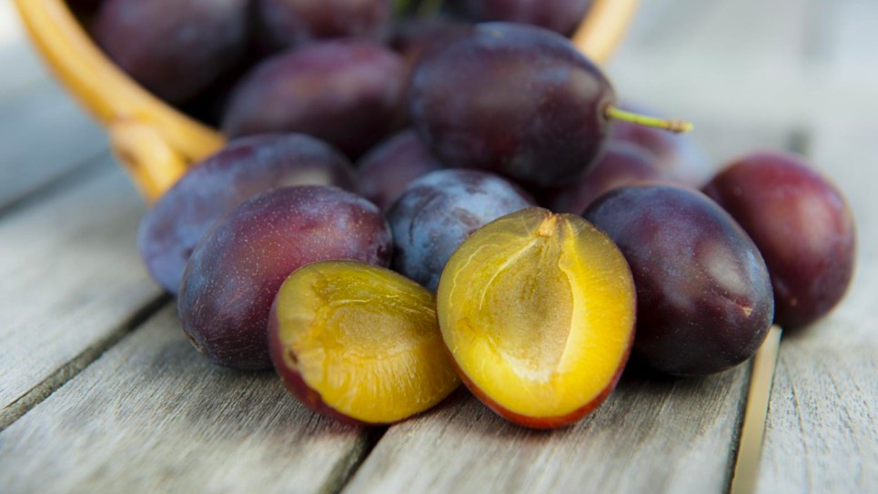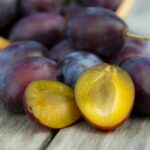 - Wash and pit the plums.