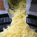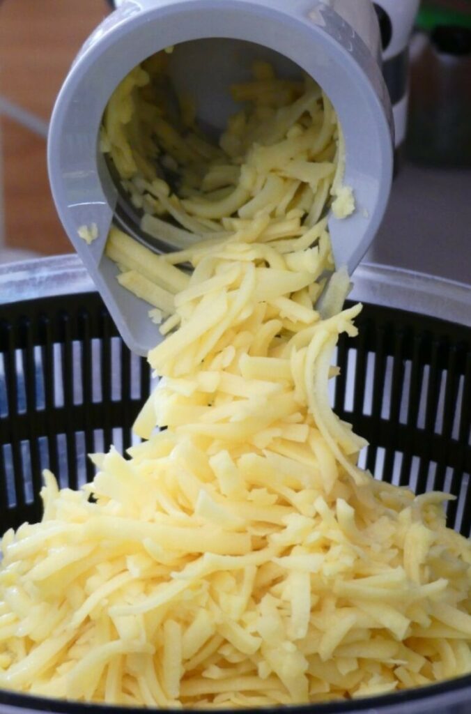 • Once the potatoes are grated, squeeze out as much liquid as possible. Transfer them to a clean, dry bowl. Add the egg, a little olive oil, season with salt to taste and mix.