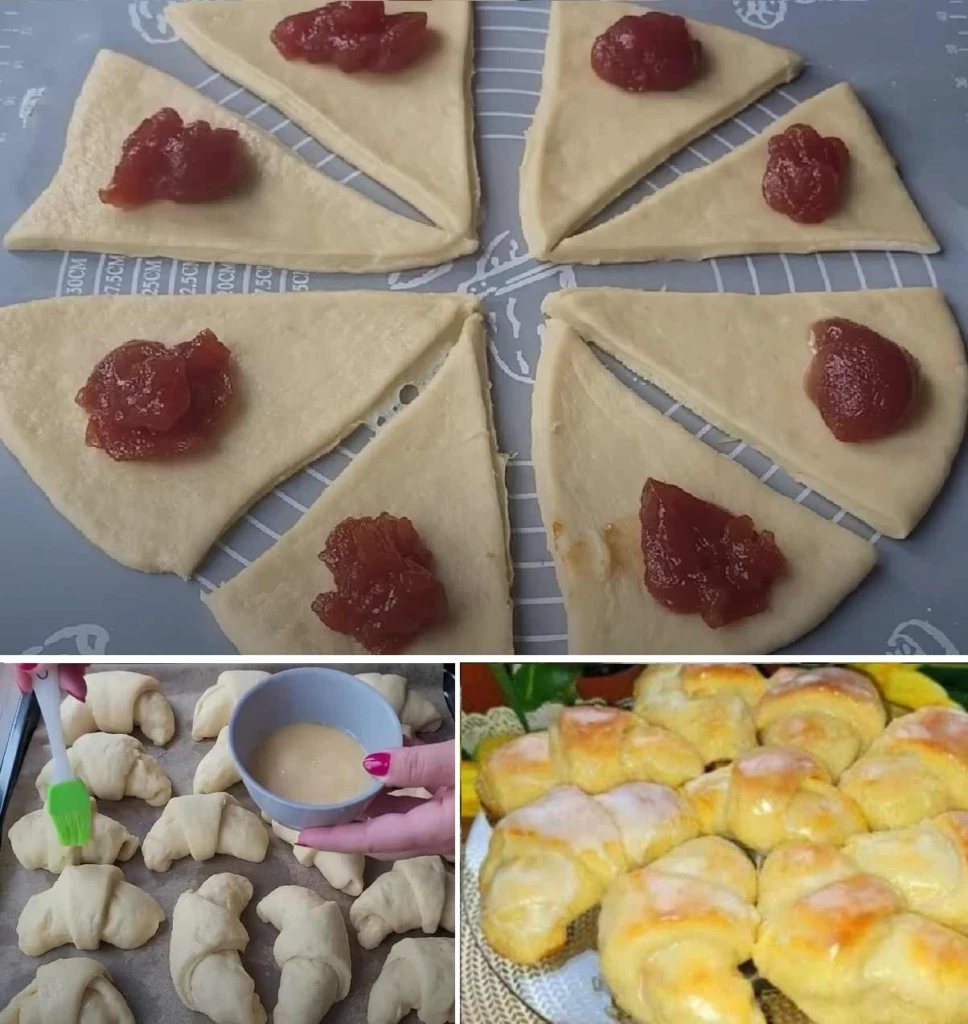 The best recipe for sweet fluffy crescent rolls with jam and icing recept