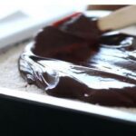 - Preparing the chocolate glaze: Heat the cream in a saucepan over low heat — it must not boil! Add the pieces of chocolate and remove from the heat. Let the mixture sit for a minute, then stir until smooth.